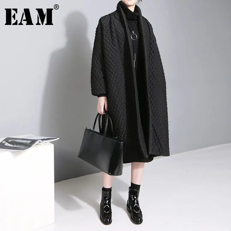 Special Offer [EAM] 2019 nowy duży rozmiar Temperament Solid Color długi rękaw długi akapit bawełny kurtka kobiet WTH Discount 17% Today!