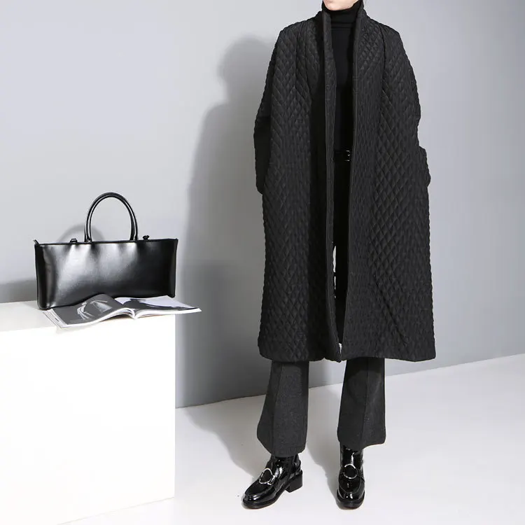 Product Name: [EAM] 2019 nowy duży rozmiar Temperament Solid Color długi rękaw długi akapit bawełny kurtka kobiet WTH