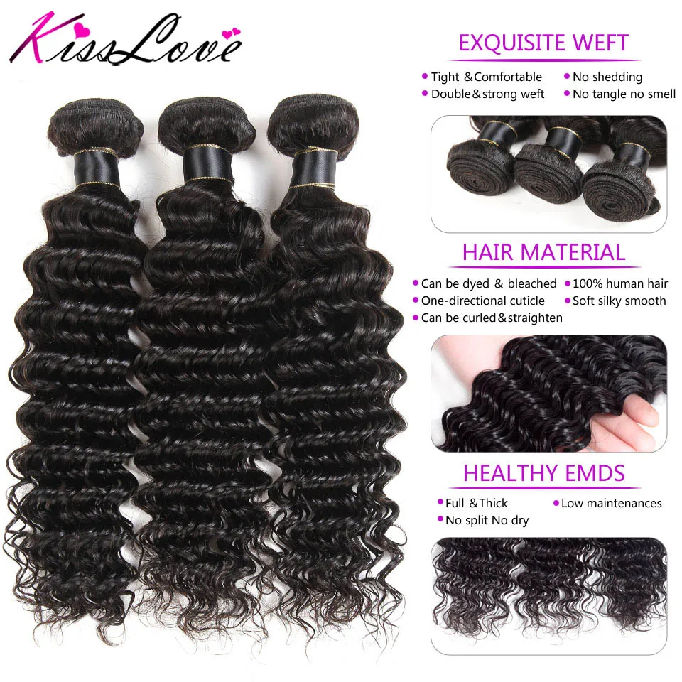Product Name: Pocałunek miłość brazylijskie włosy głęboka fala wiązki z zamknięciem ludzkie włosy wyplata 3 wiązki z zamknięcie koronki średni stosunek Remy włosy